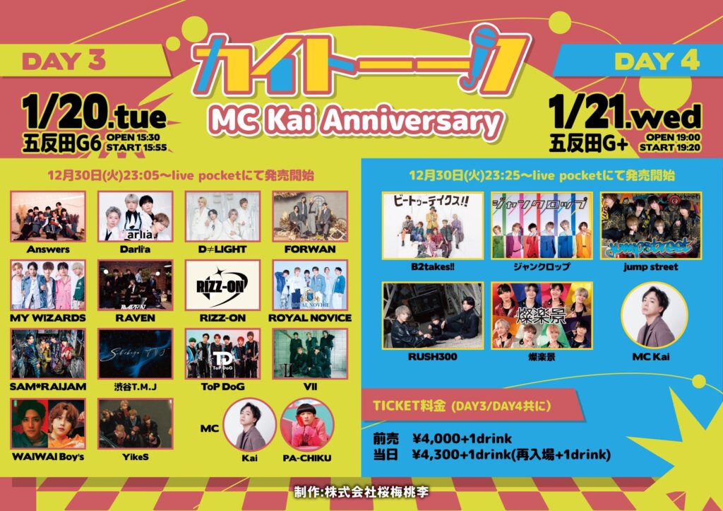 前売¥4,000/当日¥4,300(各+1d/再入場+1d)
