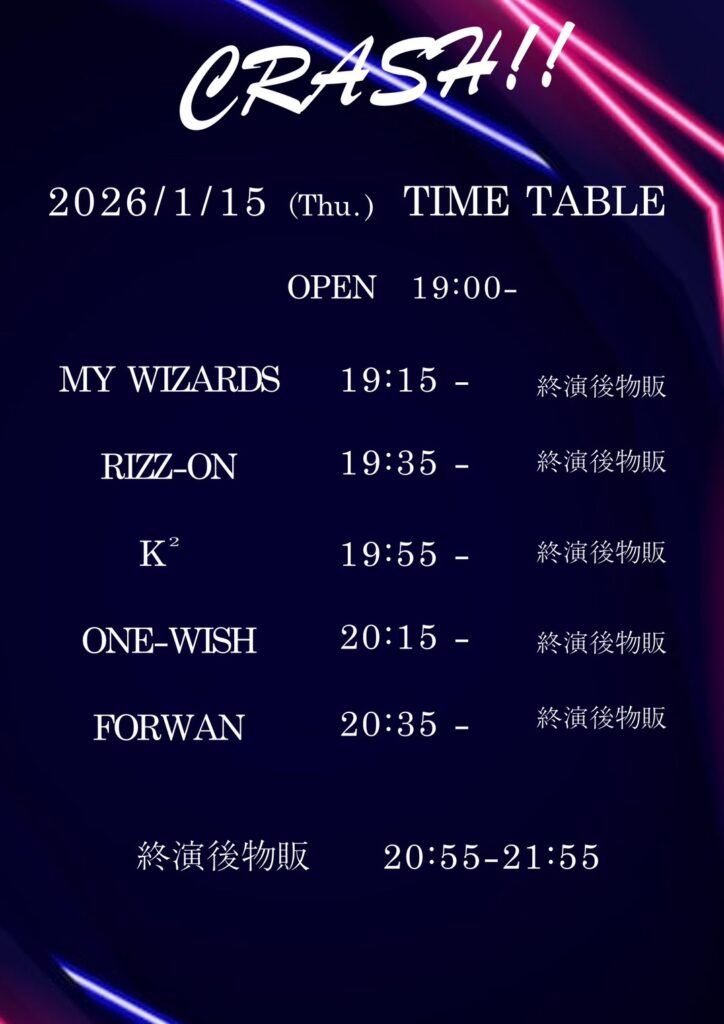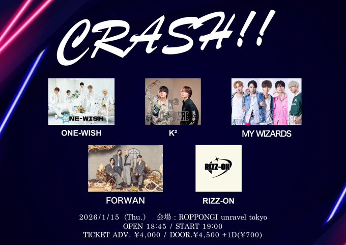 2026/1/15(木)に開催いたします、『CRASH!!』出演が決定しましたので詳細をお知らせいたします。