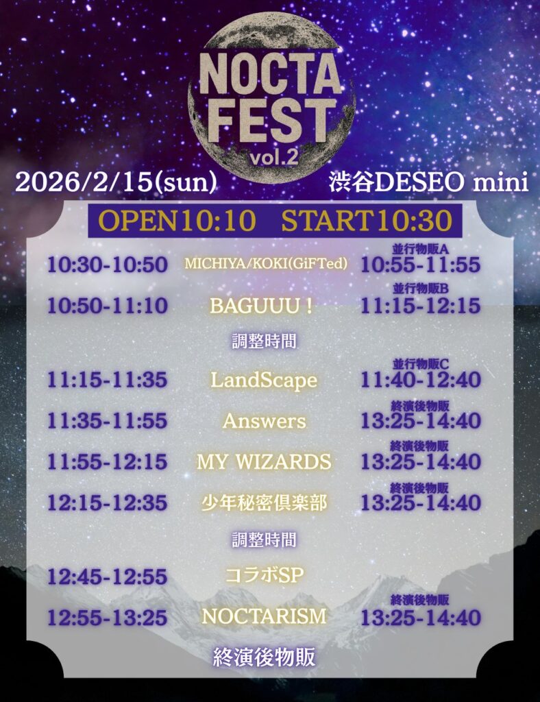 2026/2/15(日)に開催いたします、 NOCTARISM主催ライブ NOCTAFEST vol.2 の出演が決定しましたので詳細をお知らせいたします。