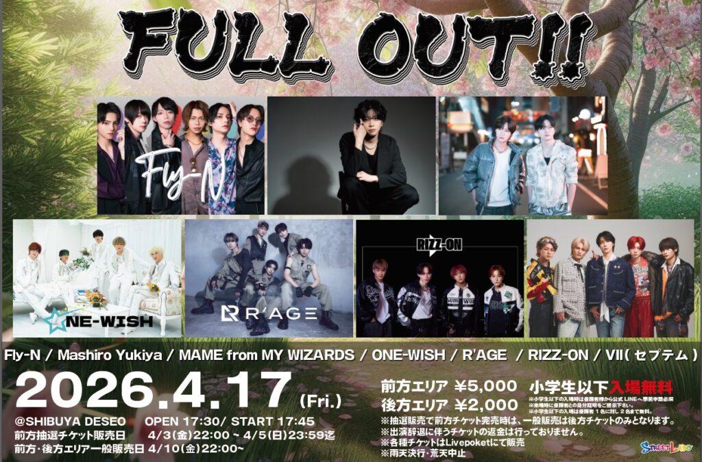 2026/4/17(金)に開催いたします、FULL OUT!! の詳細をお知らせいたします。